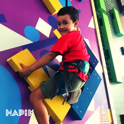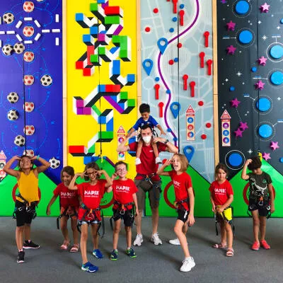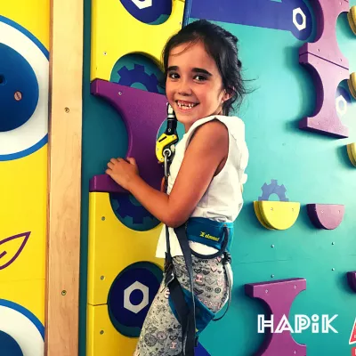 En total son 8 sesiones de escalada (2 por día), siempre desde un punto de vista lúdico, juegos, retos y más. Al ser días seguidos, los niños van a desarrollarse de manera muy rápida con la ayuda de los monitores y de la pedagogía de la Hapik Academy.