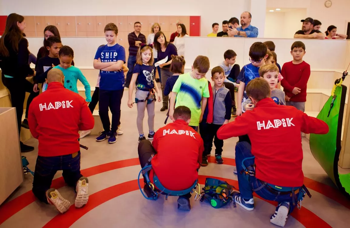 Hapik no es solo un centro de ocio más, pero la idea que la escalada, adaptada a cada niño y niña, en un entorno lúdico y 100% seguro, es un motor potente de su desarrollo con múltiples beneficios, a nivel físico y mental, combinando ejercicio y diversión. La idea que descubrir habilidades suyas que no sospechaban, será una ventaja para ellos en el futuro. La idea que conseguir superar un reto por sus esfuerzos repetidos, consejos de los monitores y ánimo de su familia, generará en ellos y en ellas una confianza imprescindible.