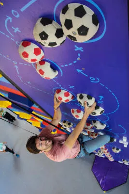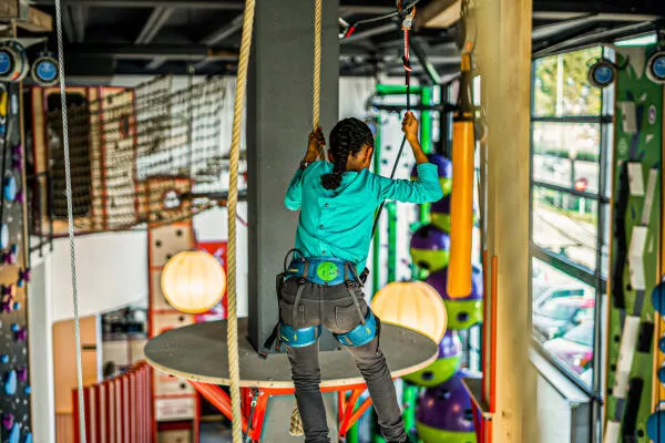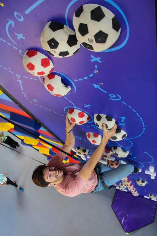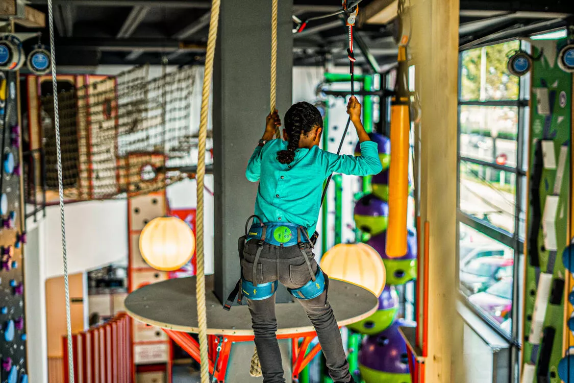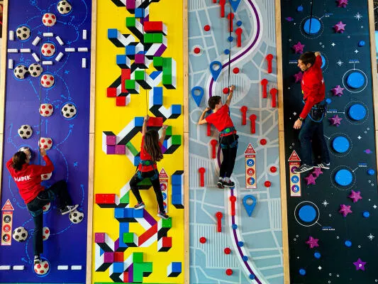 Muchos retos diferentes de escalada, con dificultades variadas, juego de colores y un circuito de aventura a 7m de altura.