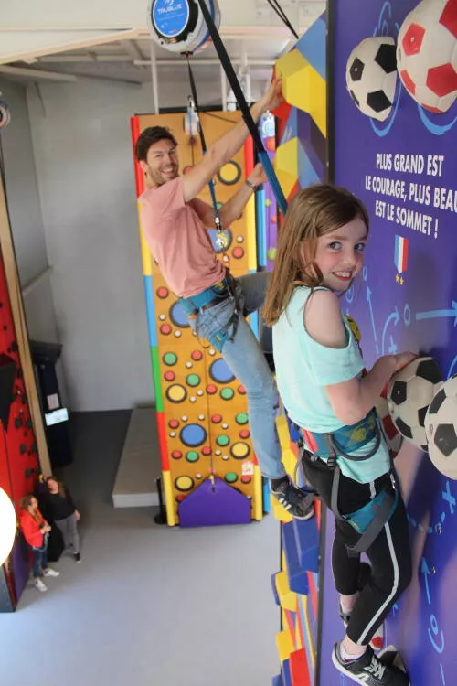 Los beneficios de la escalada en rocódromo, tanto para los adultos como para los peques, son numerosos: reducir el sobrepeso, combatir el estrés, mejorar su coordinación y psicomotricidad o adquirir un mejor conocimiento de su cuerpo. No hace falta haber practicado este deporte antes, ni tener ningún conocimiento específico, ni ningún material ya que lo proporcionamos todo. Además, es un deporte en el cual los niños tienen muchas veces una ventaja sobre sus padres, ya sea por su peso o por el poco miedo que tienen de las alturas.