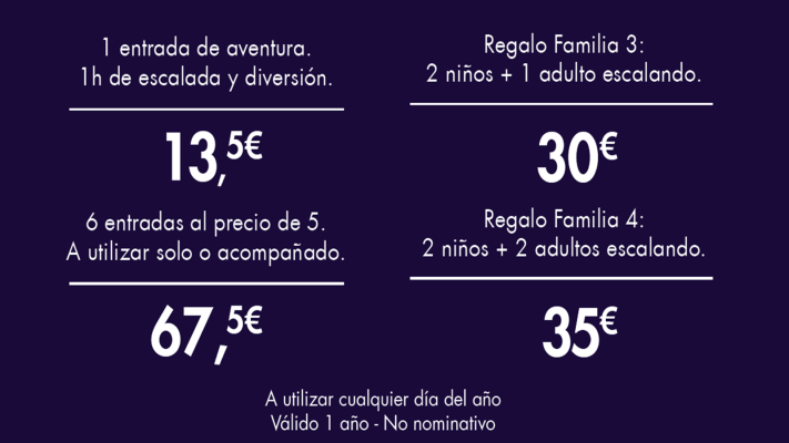 Alternativamente puedes regalar una entrada por 13,5€, o 6 entradas por 67,5€ a disfrutar solo durante todo el año o acompañado.